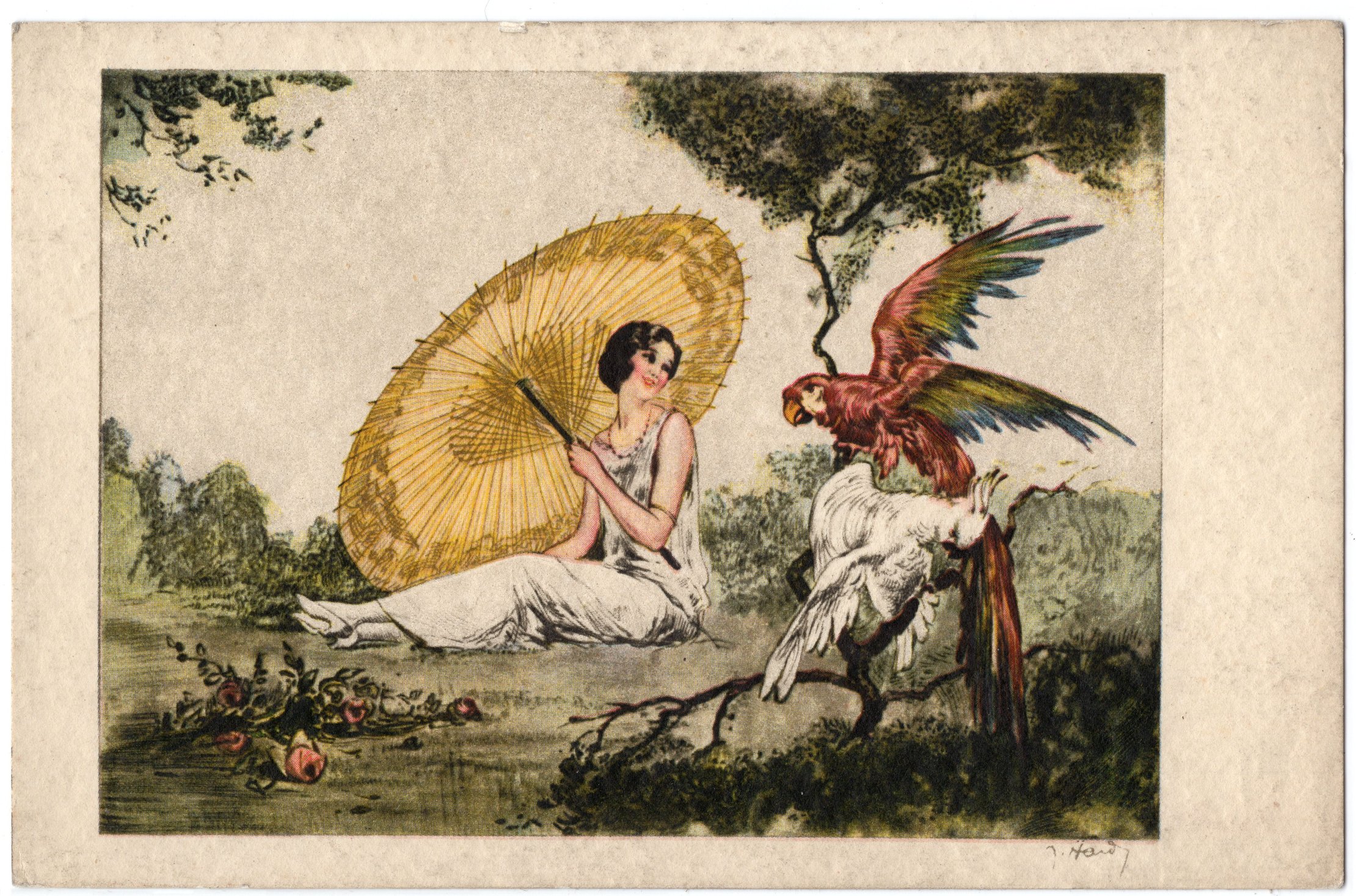 An artist-drawn card