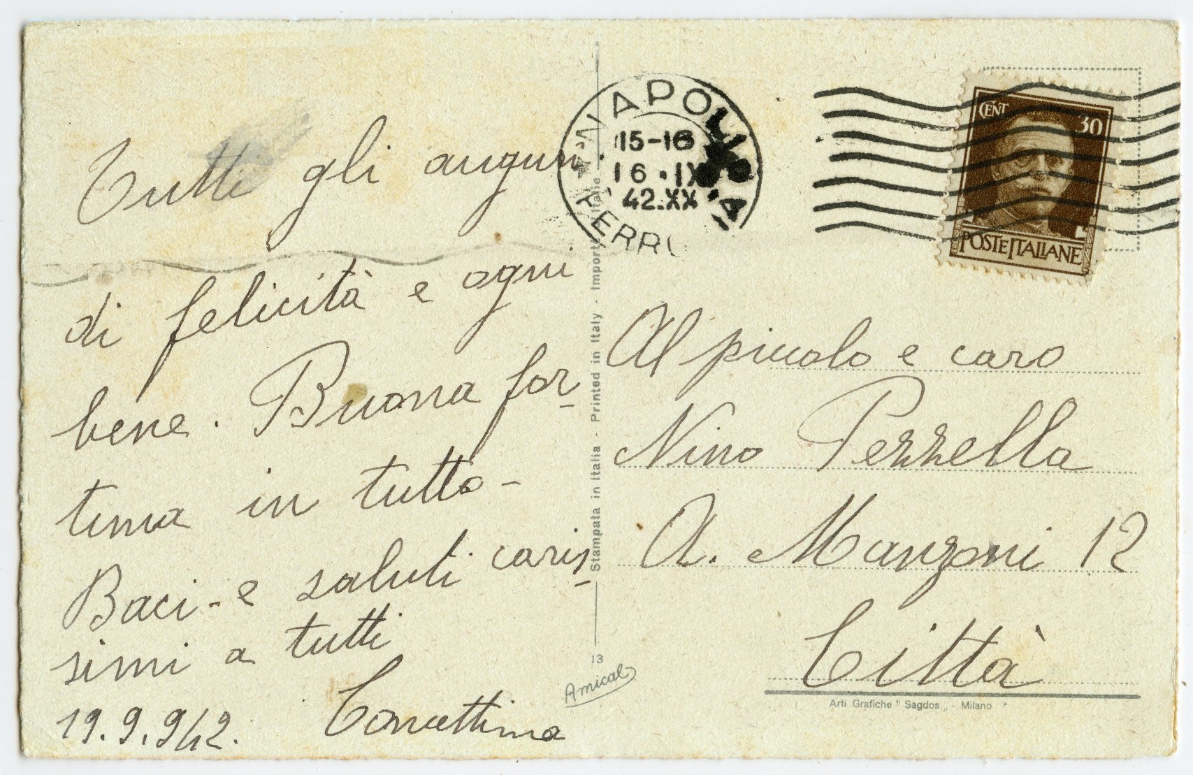 The edition of the first postcards with the GAM logo begins in 1920 at no. 538 and ends in 1933 at no. 2505 (more than 300 series). Different variants are observed and many series were published several times with different publishers' names or logos: GAM and GAM Ultra; GAM and GAM Edizioni Amical; GAM, GAM Ultra and GAM Edizioni Amical but also GAM Ultra and Clou; A. Guarneri and Clou; A. Guarneri, GAM and Amical (series no. 2334); A. Guarneri, GAM Ultra and GAM Edizioni Amical; A. Guarneri, GAM and GAM Edizioni Amical; Guarneri and GAM Edizioni Amical... Concerning A. Guarneri, between 1929 and 1931 45 series were published under this publisher's name (in full in the central part of the back). Some of these series also exist in editions GAM, Amical and Clou as mentioned above. It is also important to note that the serial numbers A. Guarneri, GAM and its variants and Clou fit into the same chronology.I'm afraid in earlier versions of this site I favoured Dell'Anna and Gasparini (publisher of degami cards), rather than Guarneri as the publisher of GAM, which I now believe was a mistake.All of these observations suggest that the GAM postcards and its variants (including Clou) were published by “GUARNERI AMILCARE” in Milan.