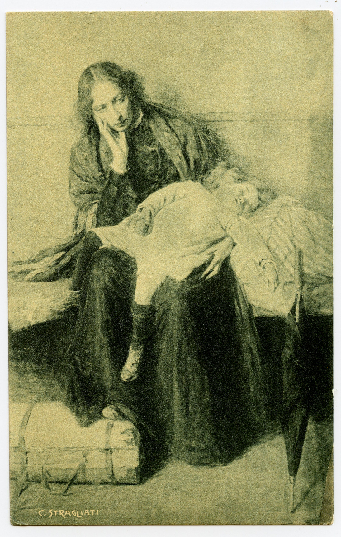 The second example looks like the first in colour but I have removed the yellowing caused by age. The gloomy appearance suits the subject, but these paintings are actually in full colour - see in the section on
