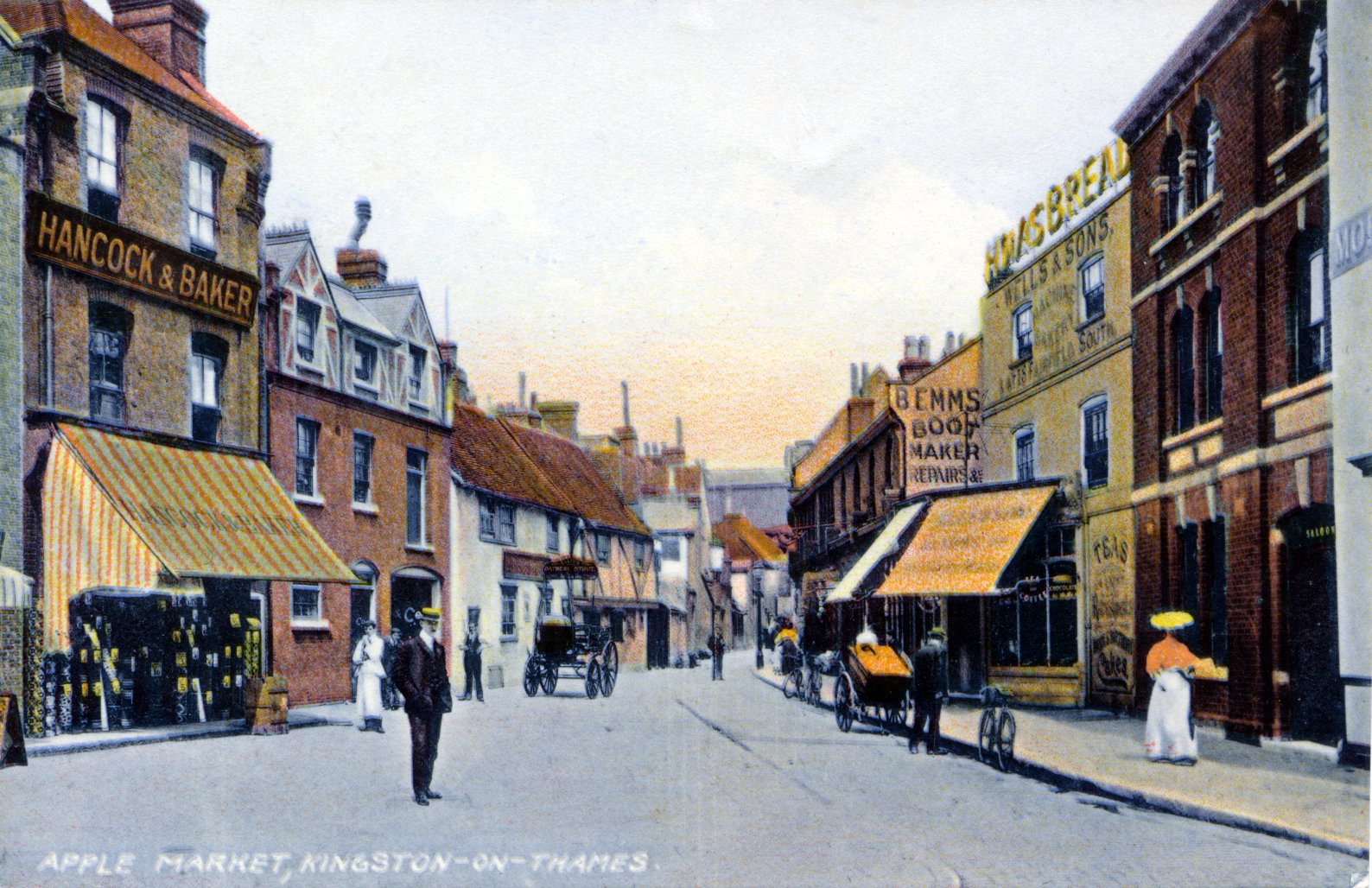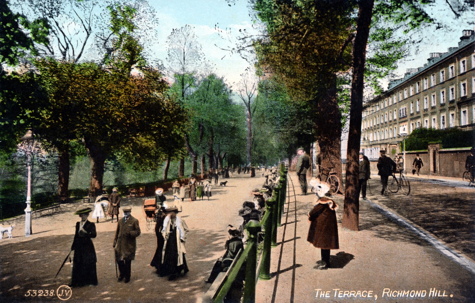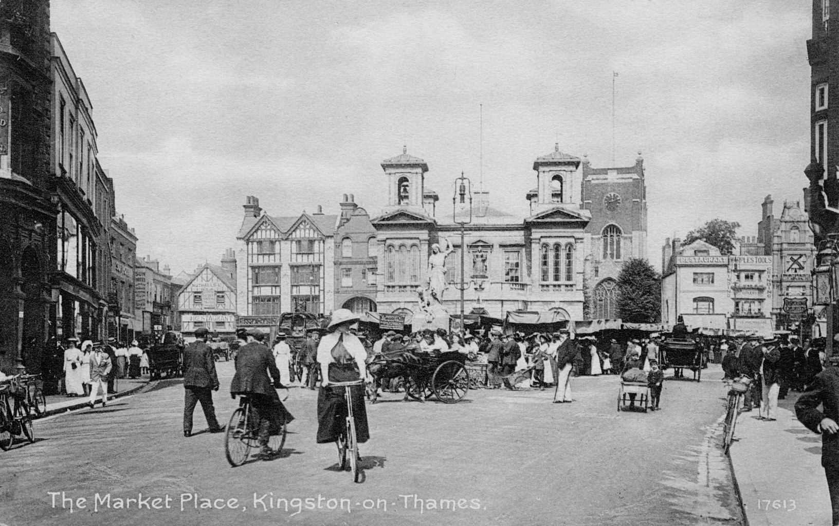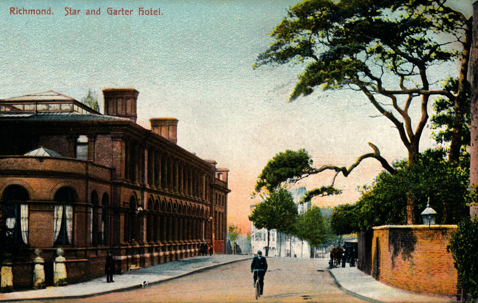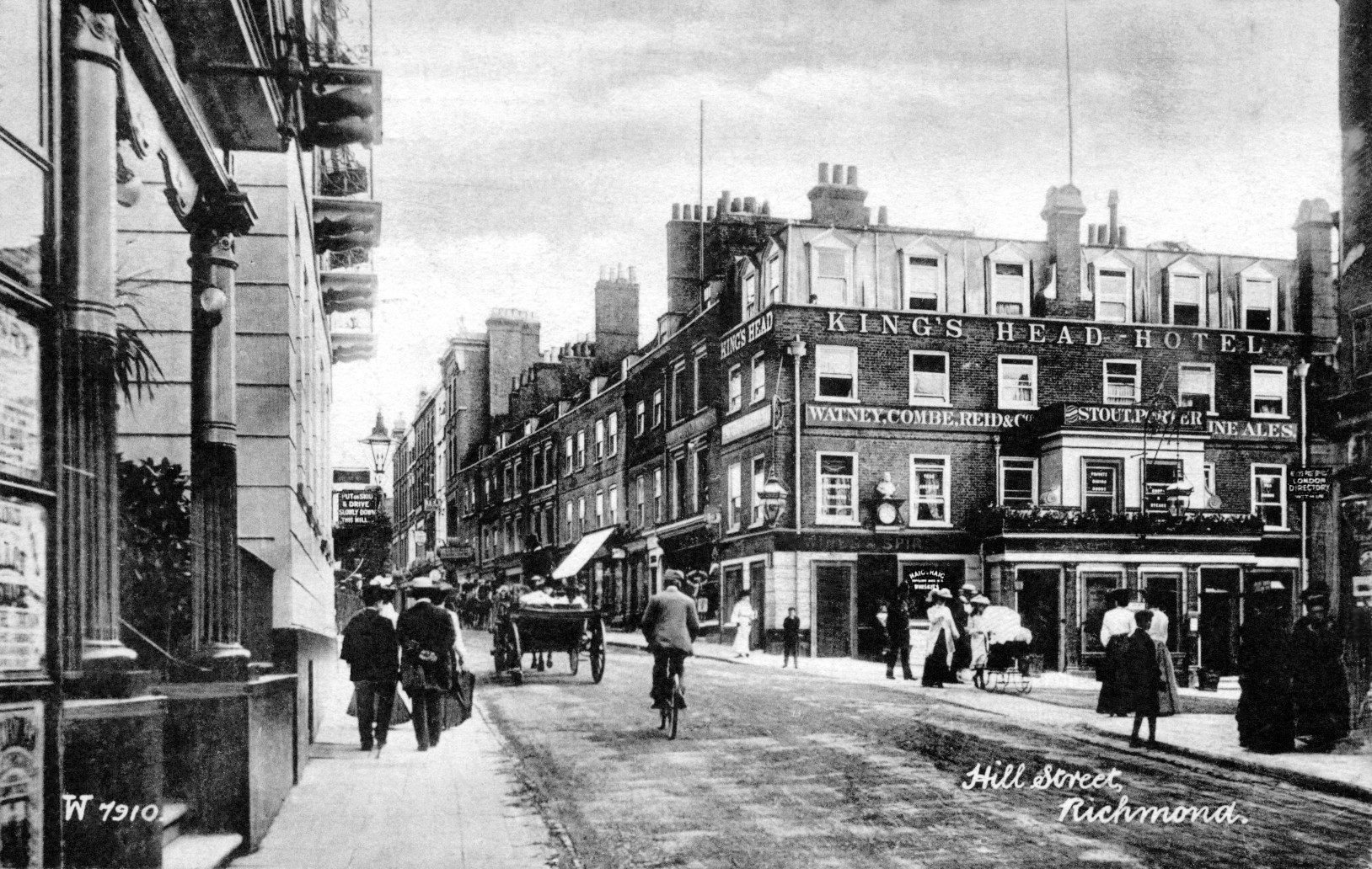 Barnes Terrace,street-townscape,hotels and inns White Hart,lady cyclist,