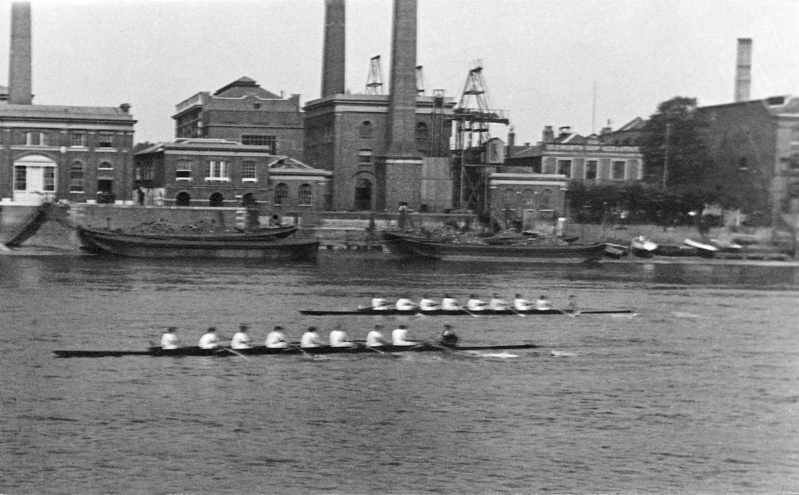Chiswick Eyot,river view,horse unloading barge,