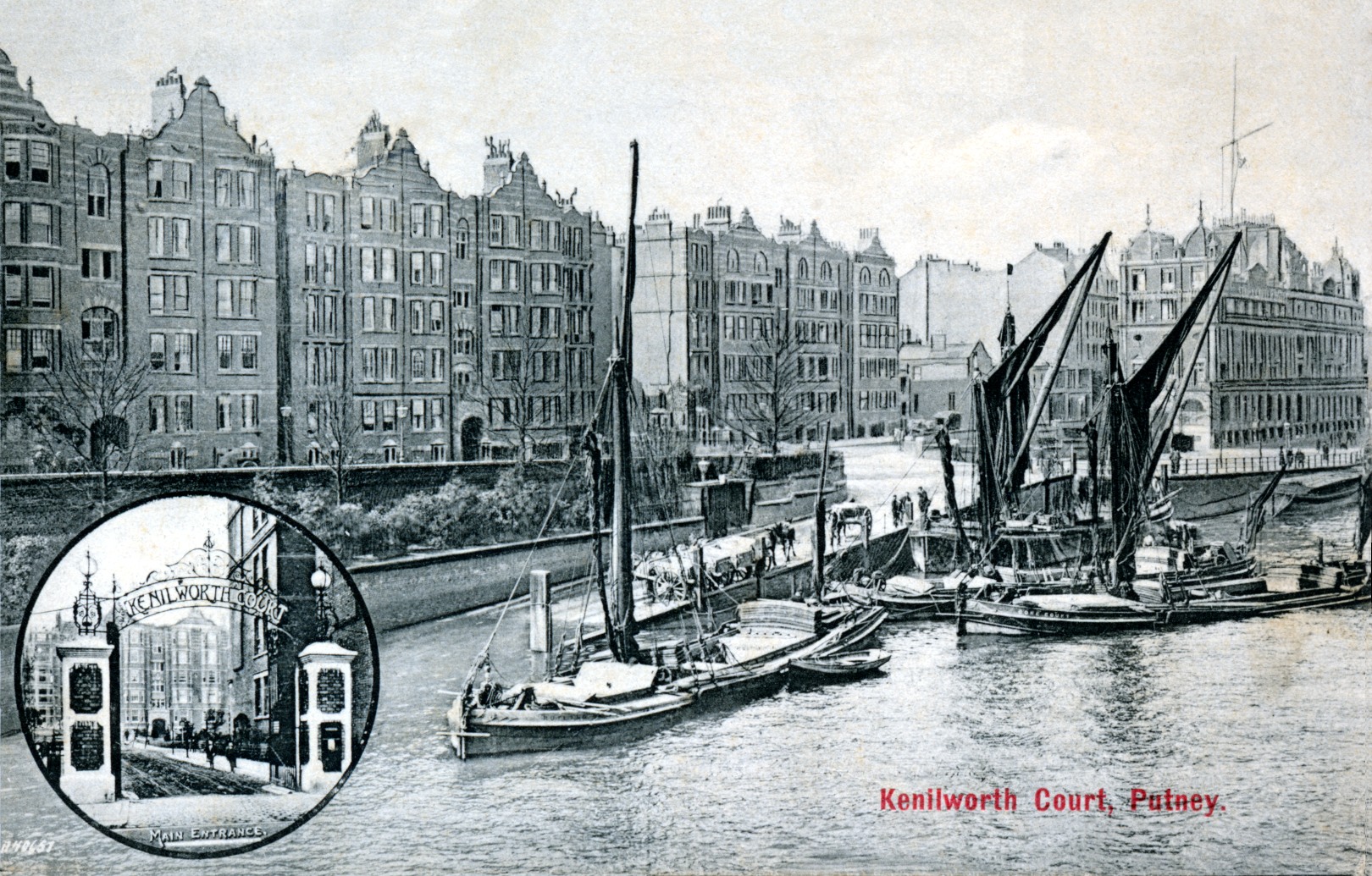 Chiswick Mall,Chiswick Eyot,hotels and inns Red Lion,river view,horse unloading barge,
