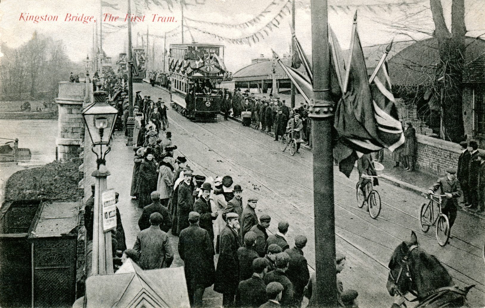 Teddington,street-townscape,trams,lady cyclist,