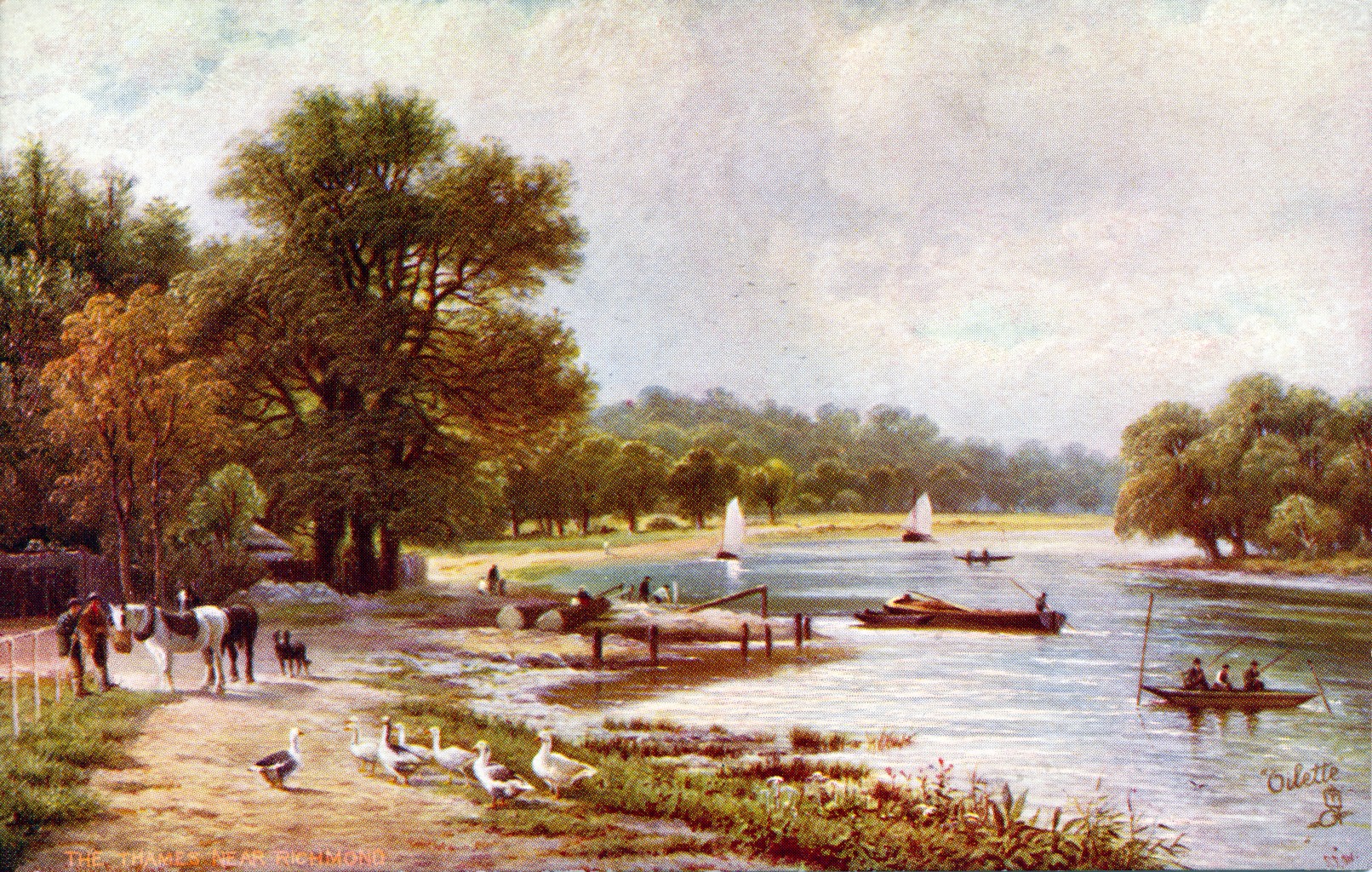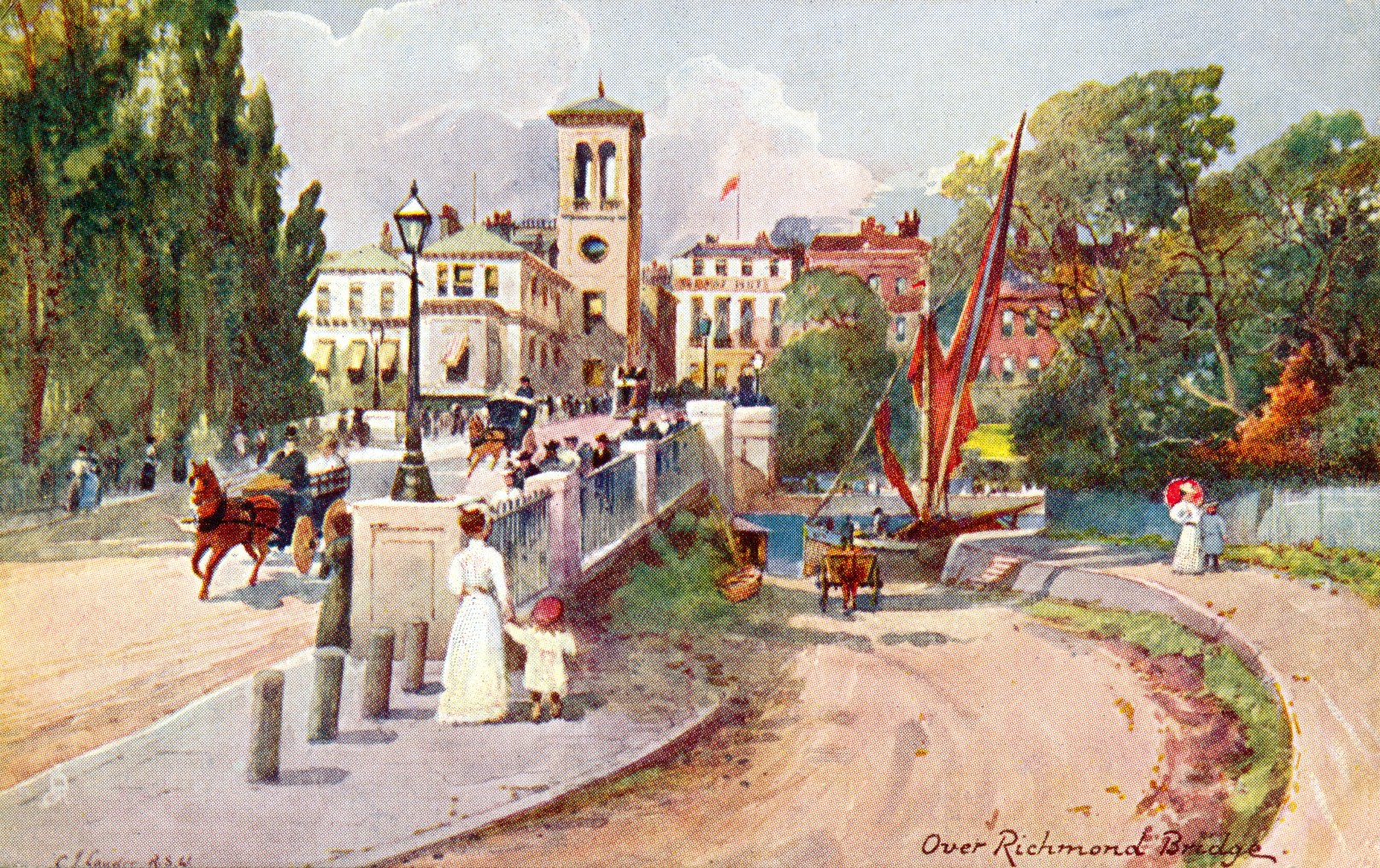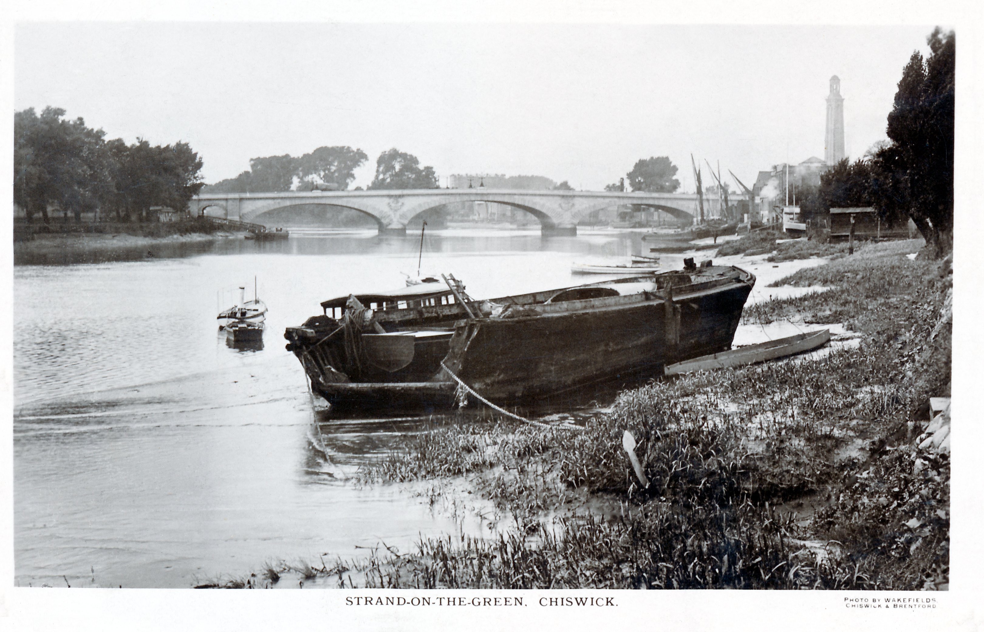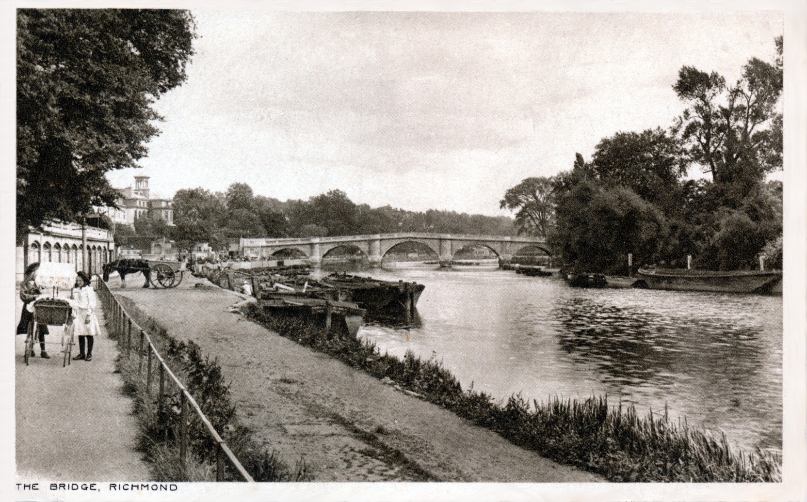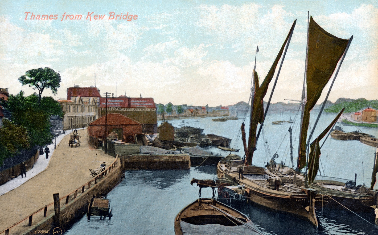 Chiswick Strand on the Green,Kew Bridge,river view,horse unloading barge,