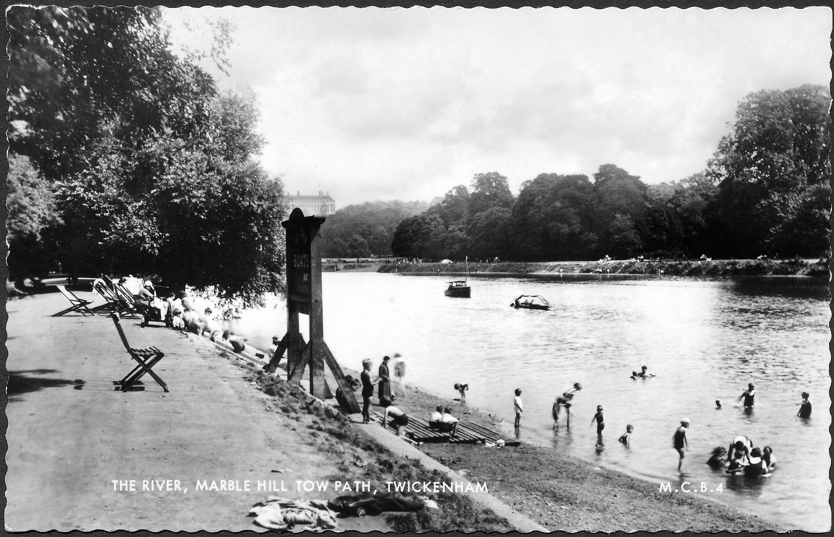 Twickenham Marble Hill,children paddling,deckchairs,river view,
